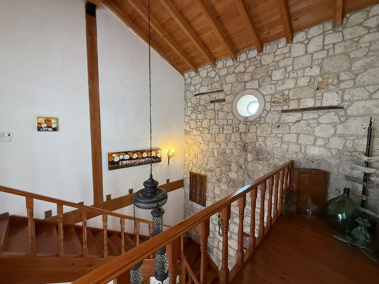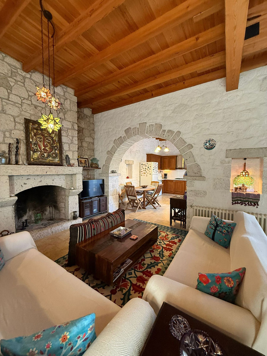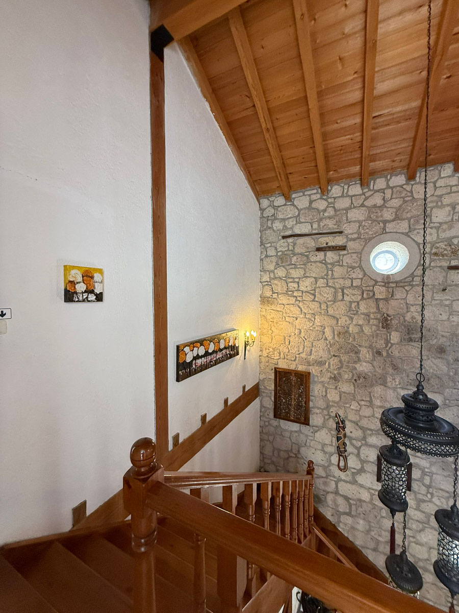 Bölgenin doğal taşları ve ahşabın uyumuyla inşa edilen bu ev;