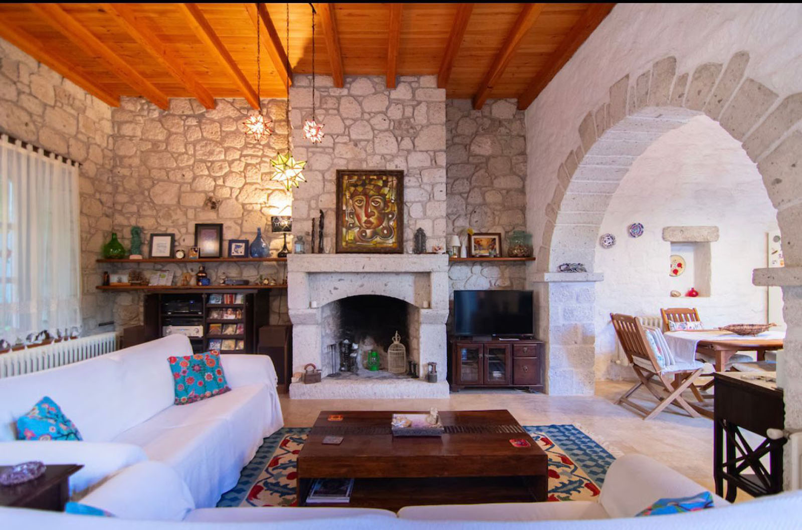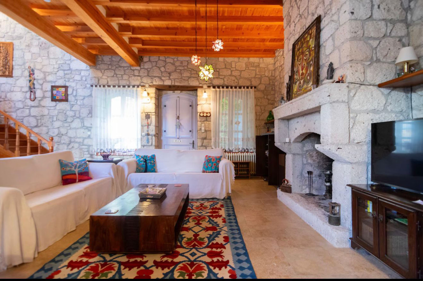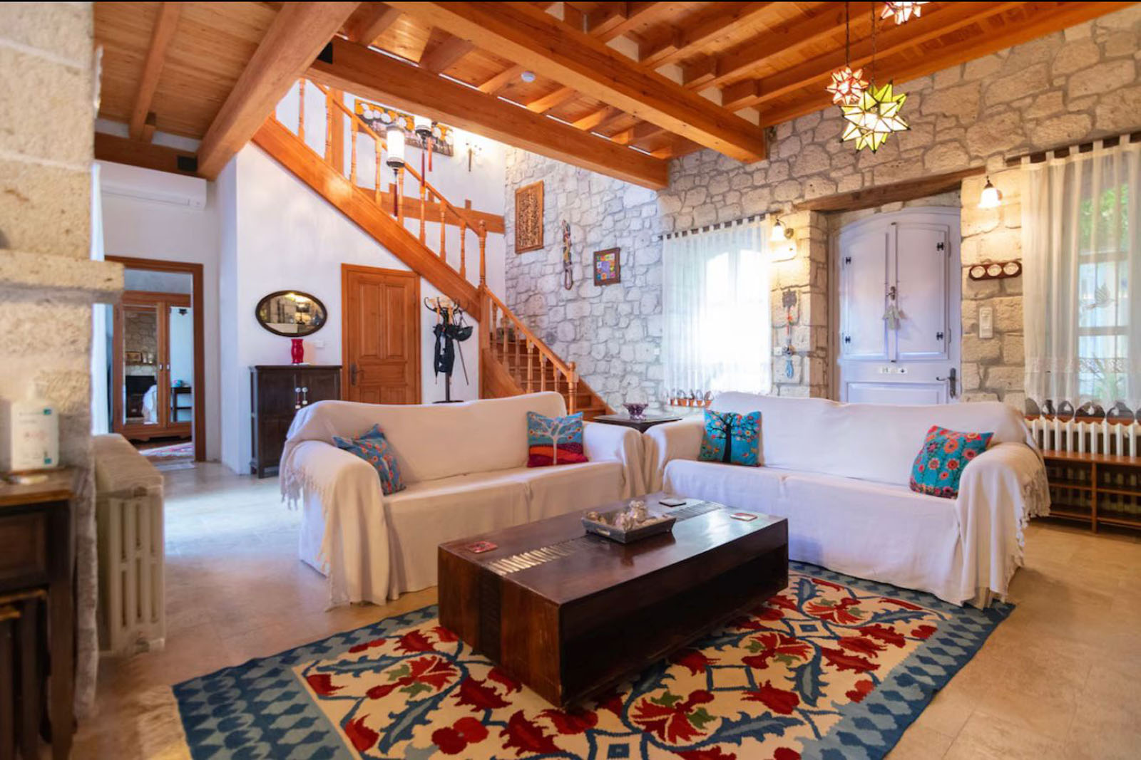 Bölgenin doğal taşları ve ahşabın uyumuyla inşa edilen bu ev;