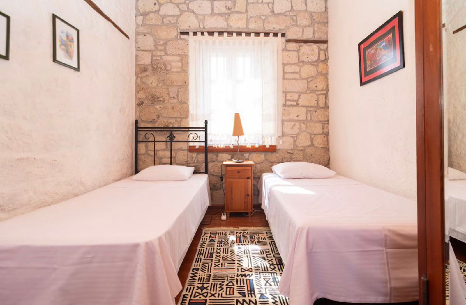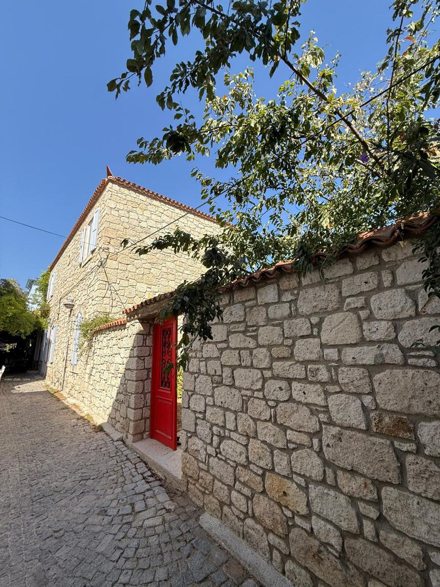 Alaçatı’nın köy merkezinde, çarşıya yürüme mesafesinde ancak kalabalık ve gürültüden uzak sakin bir sokakta konumlanan bu özel Rum taş evi, Alaçatı’nın ruhunu ve mimari dokusunu günümüze taşıyor.