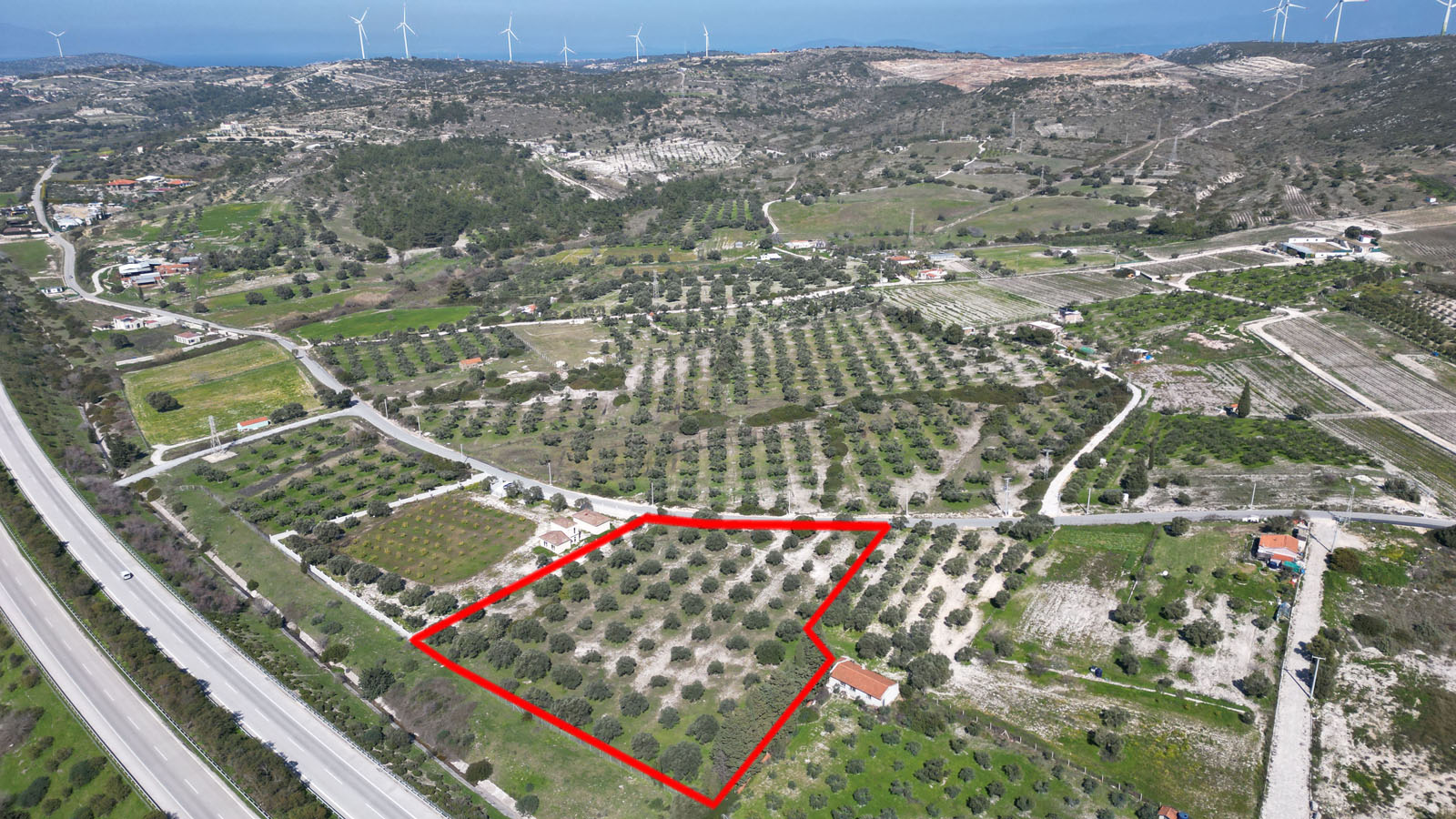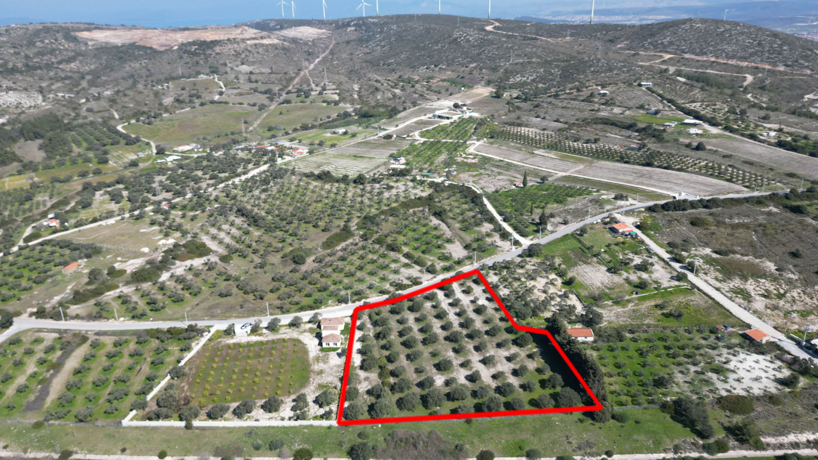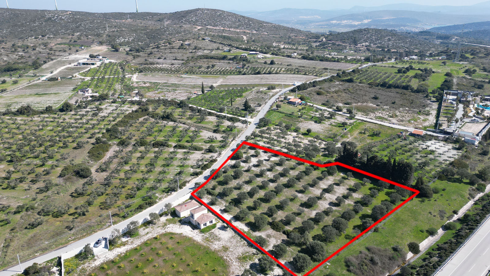 Parselin yola cephesi 77 metredir. İçerisinde yetişmiş ve verimli 70 adet zeytin ağacı bulunmaktadır. Sit boşluğu konumunda yer almakta olup ferah ve açık bir çevreye sahiptir.